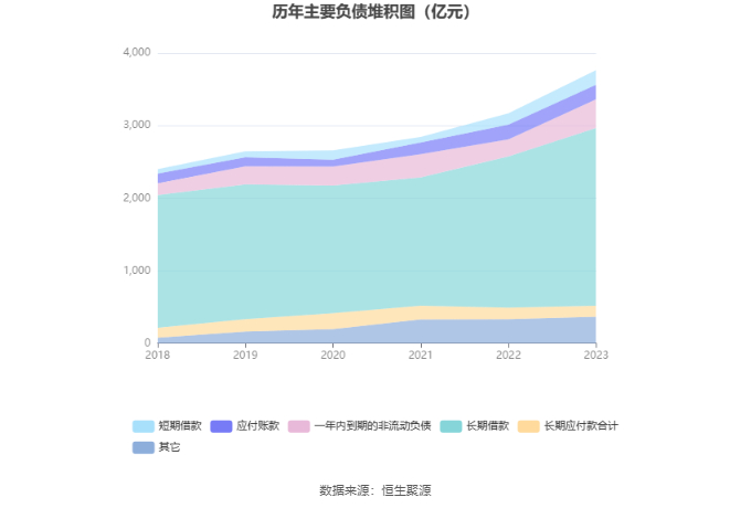 负债重大变化方面,截至2023年年末,公司长期借款较上年末增加17.43%,占公司总资产比重上升0.54个百分点,主要系本期投资所需长期借款增加;一年内到期的非流动负债较上年末增加68.70%,占公司总资产比重上升2.29个百分点;短期借款较上年末增加29.29%,占公司总资产比重上升0.37个百分点,主要系本期流动资金借款增加;其他应付款(含利息和股利)较上年末增加82.46%,占公司总资产比重上升0.34个百分点。