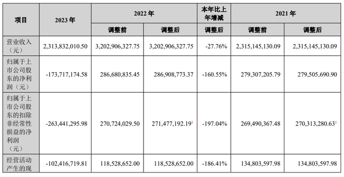 挖贝网4月27日,华宝新能近日发布2023年年度报告,报告期内公司实现营业收入2,313,832,010.50元,同比下滑27.76%;归属于上市公司股东的净利润-173,717,174.58元,同比由盈转亏。