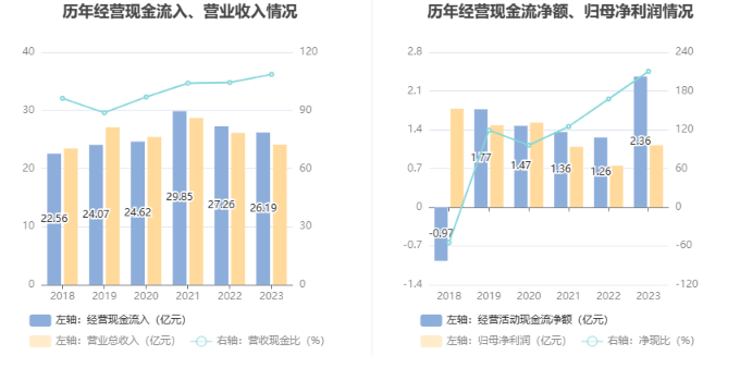 2023年,公司营业收入现金比为108.58%,净现比为210.29%。