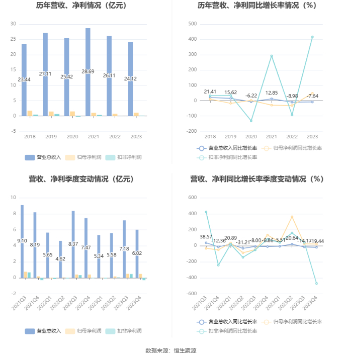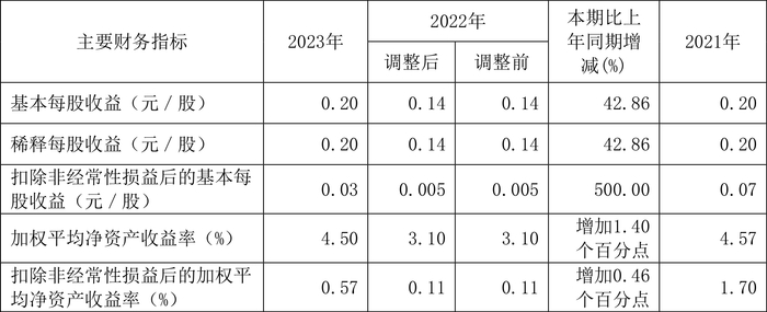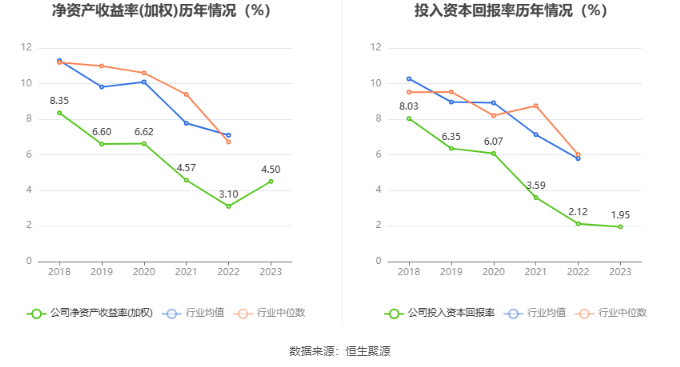 数据显示,2023年公司加权平均净资产收益率为4.50%,较上年同期增长1.40个百分点;公司2023年投入资本回报率为1.95%,较上年同期下降0.17个百分点。