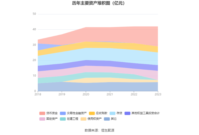 资产重大变化方面,截至2023年年末,公司固定资产较上年末增加65.51%,占公司总资产比重上升5.63个百分点;货币资金较上年末增加19.74%,占公司总资产比重上升5.11个百分点;使用权资产较上年末减少29.57%,占公司总资产比重下降1.41个百分点;其他非流动资产较上年末增加369.55%,占公司总资产比重上升1.22个百分点。