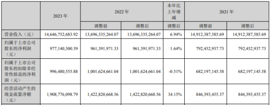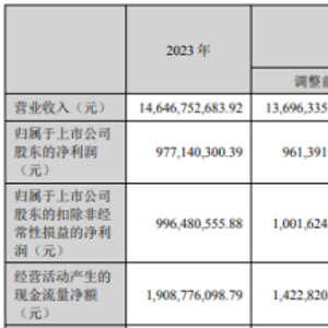 挖贝网4月27日,新宝股份 近日发布2023年年度报告,报告期内公司实现营业收入14,646,752,683.92元,同比增长6.94%;归属于上市公司股东的净利润977,140,300.39元,同比增长1.64%。