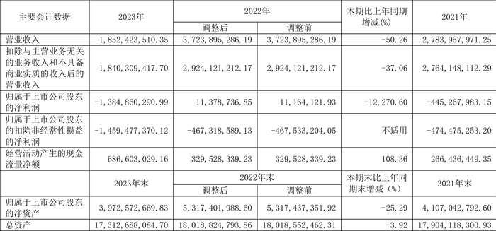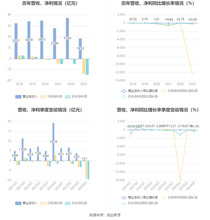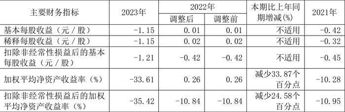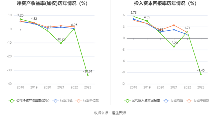 数据显示,2023年公司加权平均净资产收益率为-33.61%,较上年同期下降33.87个百分点;公司2023年投入资本回报率为-9.45%,较上年同期下降11.16个百分点。