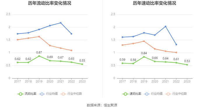 2023年,公司流动比率为0.55,速动比率为0.53。