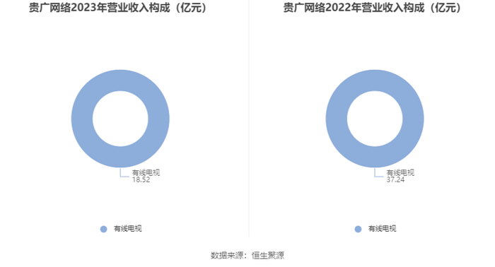 分产品来看,2023年公司主营业务中,有线电视收入18.52亿元,同比下降50.26%,占营业收入的100.00%。