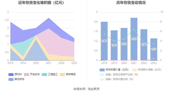 从存货变动来看,截至2023年年末,公司存货账面价值为1.37亿元,占净资产的3.45%。其中,存货跌价准备为55.52万元,计提比例为0.4%。