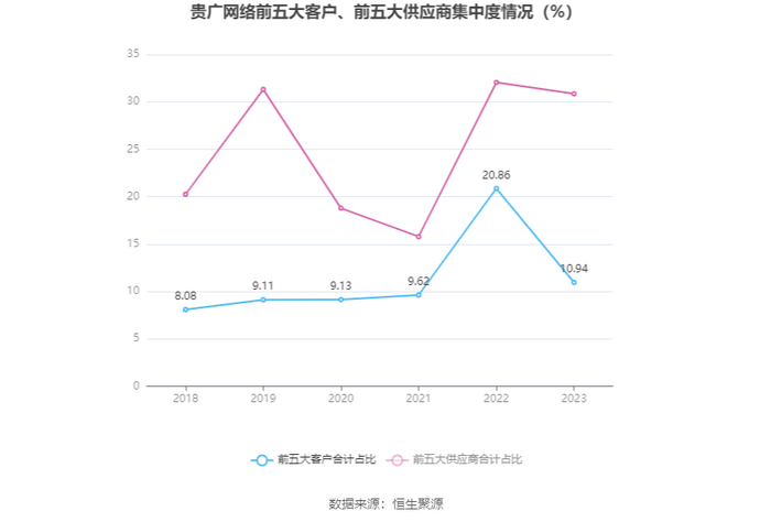 值得注意的是,根据年报数据,贵广网络11.58%股份处于质押状态。其中,第一大股东贵州广播影视投资有限公司质押1.40亿股公司股份,占其全部持股的35.66%。