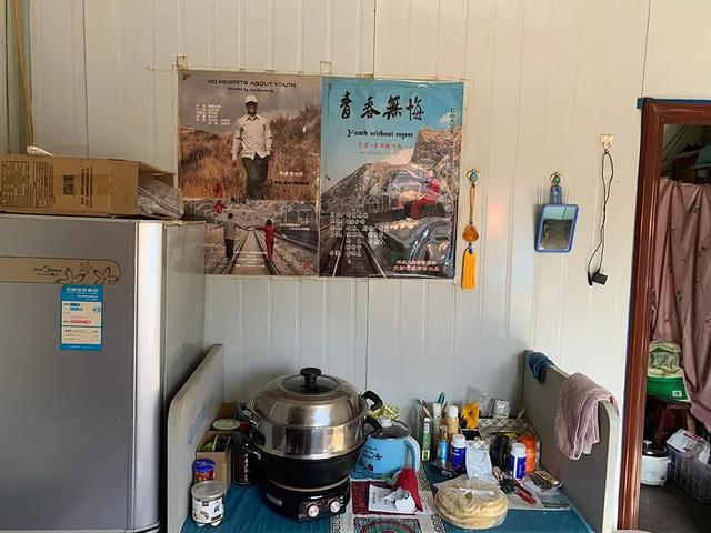 菅彩连的小卖铺里挂着两幅电影宣传海报,一幅是《夜幕将至》,另一幅是儿子上大学时的作品《青春无悔》。海报在灶台旁挂了近十年,但依然平整,不覆灰尘。菅彩连经常擦拭。