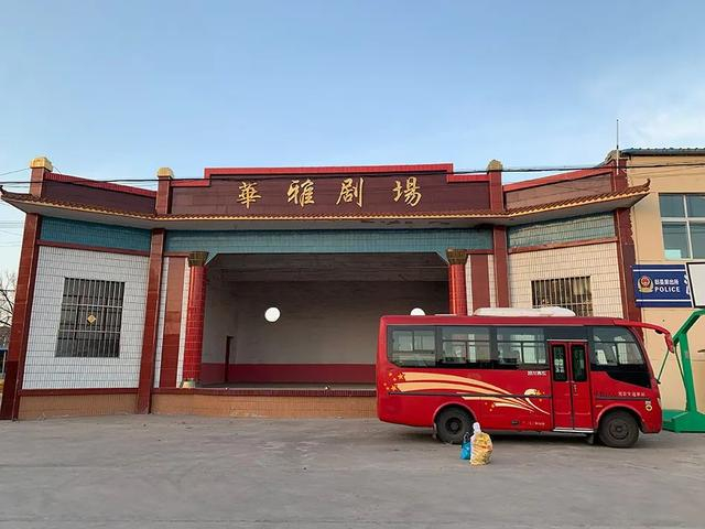 停在沙坪村露天戏台旁的中巴车
