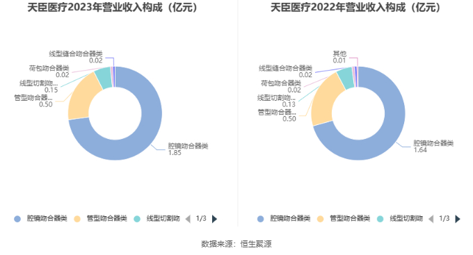 资料显示,报告期内,公司的主要业务延续了聚焦外科手术中关键时刻(即病变组织分离、切除以及器官功能重建等)所需要的各种吻合器类产品、辅助手术环境建立和术中止血功能的手术支持类系列产品、轻度痔病治疗类以及泌尿术后健护类产品等。其中吻合器涵盖了心胸外科、胃肠外科、肝胆脾胰外科、普外科、泌尿外科等手术领域,包括管型吻合器、腔镜吻合器、线型切割吻合器、荷包吻合器和线型缝合吻合器五大类产品。