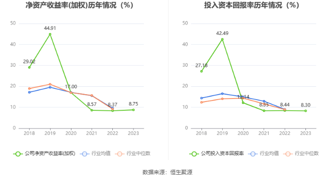 数据显示,2023年公司加权平均净资产收益率为8.75%,较上年同期增长0.38个百分点;公司2023年投入资本回报率为8.30%,较上年同期下降0.14个百分点。