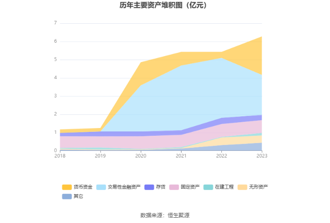资产重大变化方面,截至2023年年末,公司货币资金较上年末增加540.00%,占公司总资产比重上升27.68个百分点;交易性金融资产较上年末减少33.64%,占公司总资产比重下降25.72个百分点;固定资产较上年末减少2.04%,占公司总资产比重下降1.96个百分点;在建工程较上年末增加325.25%,占公司总资产比重上升1.62个百分点。