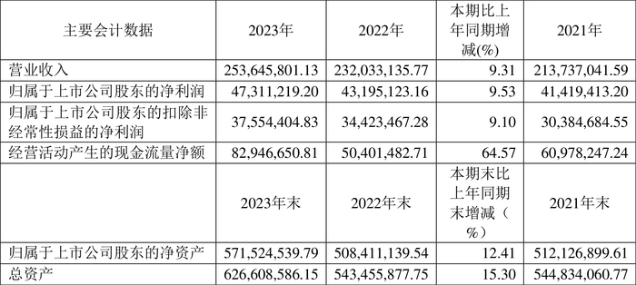 2023年,公司经营活动现金流净额为8294.67万元,同比增长64.57%,主要系营业收入增长带动销售回款增加所致;筹资活动现金流净额-473.88万元,同比增加6265.56万元,主要系本年未发生库存股回购以及因股权激励归属向公司员工转让库存股收到的现金增加综合所致;投资活动现金流净额9797.41万元,上年同期为-2923.21万元,主要系银行理财投资收回所致。