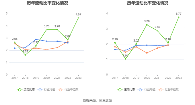 2023年,公司流动比率为4.67,速动比率为3.77。