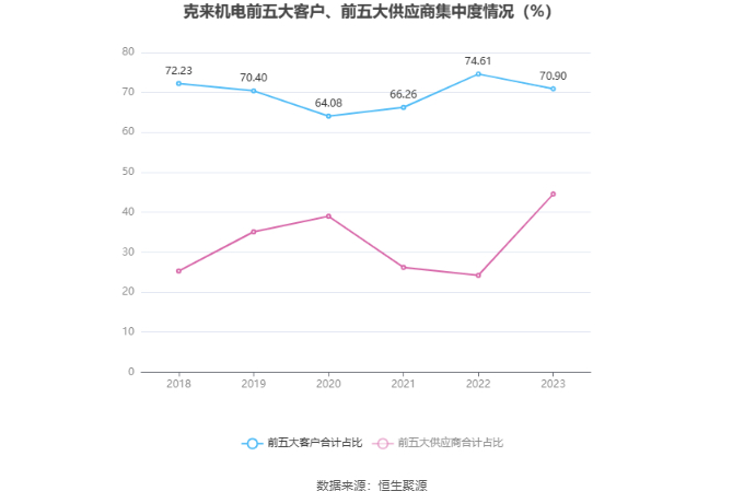 报告期内,公司前五大客户合计销售金额4.85亿元,占总销售金额比例为70.90%,公司前五名供应商合计采购金额1.35亿元,占年度采购总额比例为44.57%。