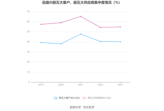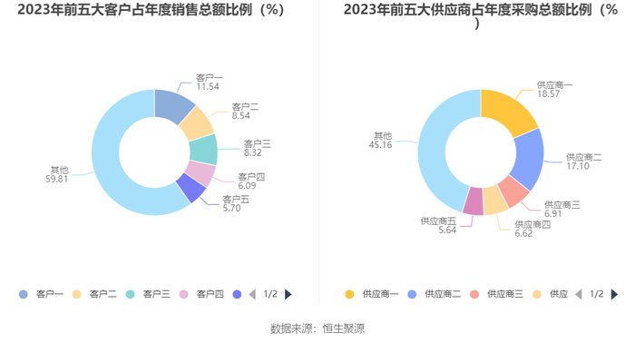 报告期内,公司前五大客户合计销售金额1.79亿元,占总销售金额比例为40.19%,公司前五名供应商合计采购金额1.19亿元,占年度采购总额比例为54.84%。