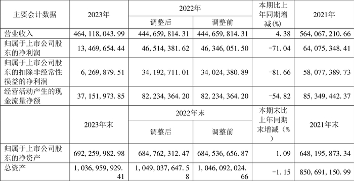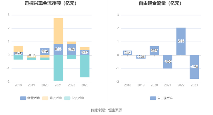进一步统计发现,2023年公司自由现金流为-1.78亿元,上年同期为2.06亿元。