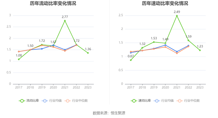 2023年,公司流动比率为1.36,速动比率为1.23。
