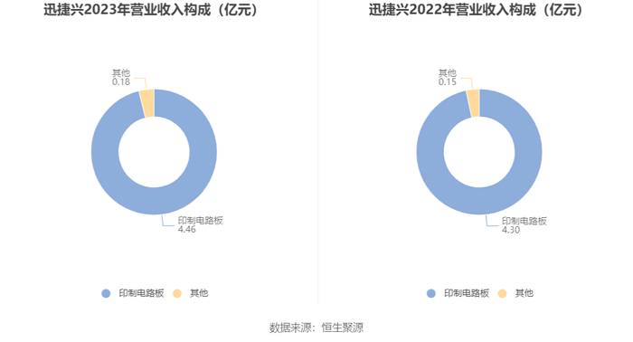 分产品来看,2023年公司主营业务中,印制电路板收入4.46亿元,同比增长3.65%,占营业收入的96.02%。