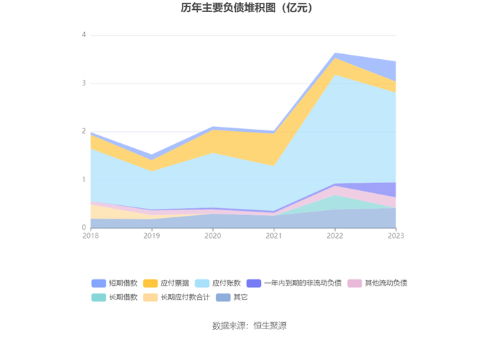 负债重大变化方面,截至2023年年末,公司应付账款较上年末减少17.31%,占公司总资产比重下降3.50个百分点;短期借款较上年末增加277.58%,占公司总资产比重上升2.96个百分点;一年内到期的非流动负债较上年末增加501.05%,占公司总资产比重上升2.47个百分点;应付票据较上年末减少32.49%,占公司总资产比重下降1.05个百分点。