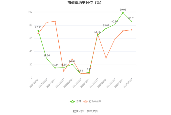 市盈率为负时,不显示当期分位数,会导致折线图中断。