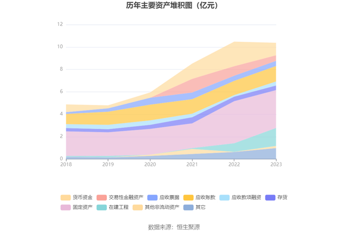 资产重大变化方面,截至2023年年末,公司货币资金较上年末减少49.50%,占公司总资产比重下降10.23个百分点;在建工程较上年末增加109.82%,占公司总资产比重上升8.20个百分点;固定资产较上年末减少10.26%,占公司总资产比重下降3.29个百分点;交易性金融资产较上年末减少41.20%,占公司总资产比重下降3.29个百分点。