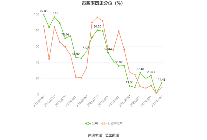 市盈率为负时,不显示当期分位数,会导致折线图中断。
