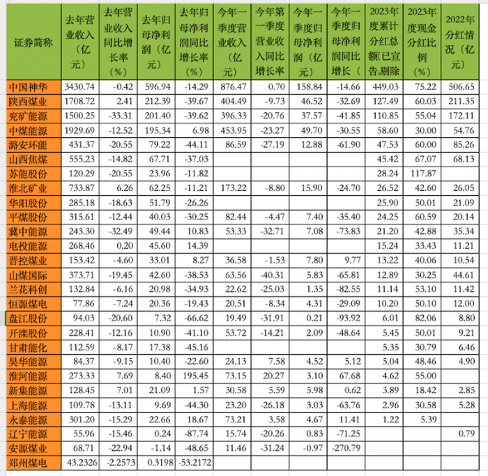 从煤炭企业的业绩来看,无论是2023年全年还是2024年一季度,利润普遍呈现出了下滑的趋势。