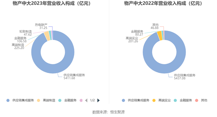 分产品看,供应链集成服务、高端制造、金融服务2023年毛利率分别为1.69%、16.83%、12.33%。