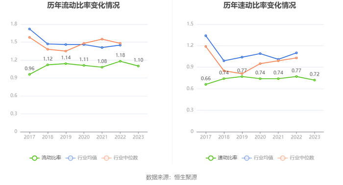 2023年,公司流动比率为1.10,速动比率为0.72。