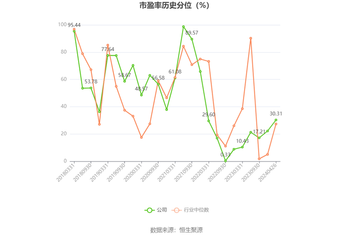 市盈率为负时,不显示当期分位数,会导致折线图中断。