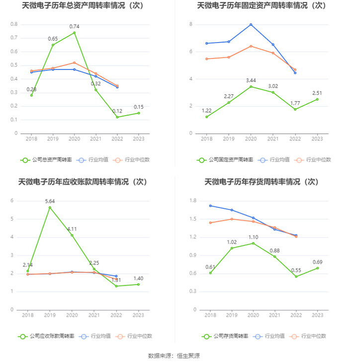营运能力方面,2023年,公司公司总资产周转率为0.15次,上年同期为0.12次(2022年行业平均值为0.34次,公司位居同行业56/60);固定资产周转率为2.51次,上年同期为1.77次(2022年行业平均值为4.45次,公司位居同行业51/60);公司应收账款周转率、存货周转率分别为1.40次、0.69次。