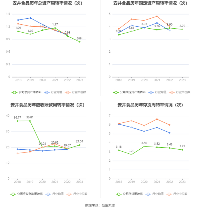 营运能力方面,2023年,公司公司总资产周转率为0.84次,上年同期为0.98次(2022年行业平均值为1.01次,公司位居同行业9/11);固定资产周转率为3.79次,上年同期为3.90次(2022年行业平均值为3.70次,公司位居同行业7/11);公司应收账款周转率、存货周转率分别为21.51次、3.22次。
