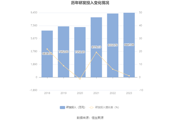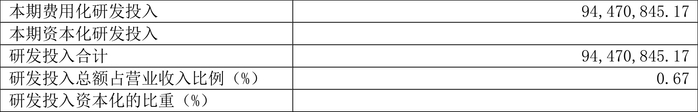 2023年全年,公司研发投入金额为9447.08万元,同比增长1.22%;研发投入占营业收入比例为0.67%,相比上年同期下降0.10个百分点。此外,公司全年研发投入资本化率为0。
