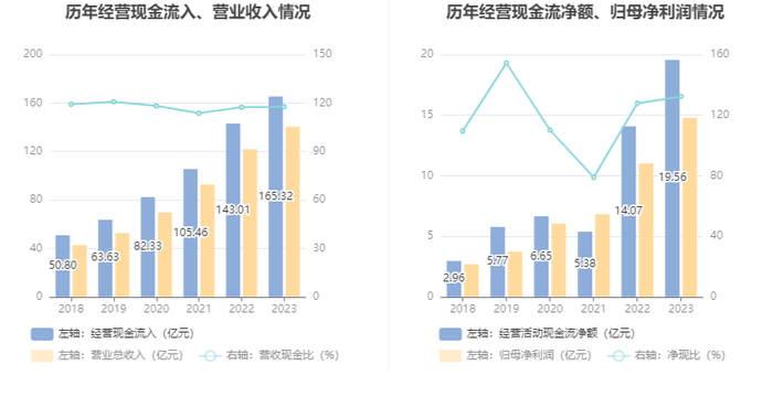 2023年,公司营业收入现金比为117.71%,净现比为132.31%。
