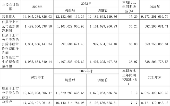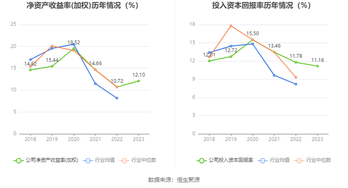 数据显示,2023年公司加权平均净资产收益率为12.10%,较上年同期增长1.38个百分点;公司2023年投入资本回报率为11.16%,较上年同期下降0.62个百分点。