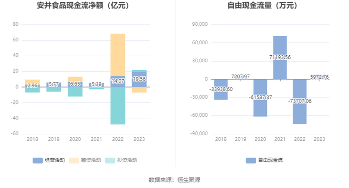2023年,公司经营活动现金流净额为19.56亿元,同比增长38.97%;筹资活动现金流净额-7.05亿元,同比减少61.27亿元;投资活动现金流净额2.17亿元,上年同期为-47.95亿元。