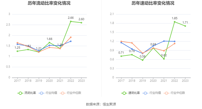 2023年,公司流动比率为2.60,速动比率为1.71。