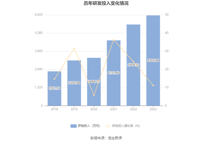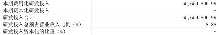 2023年全年,公司研发投入金额为6565.98万元,同比增长11.20%;研发投入占营业收入比例为8.88%,相比上年同期下降0.32个百分点。此外,公司全年研发投入资本化率为0。