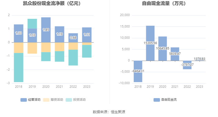进一步统计发现,2023年公司自由现金流为1379.83万元,上年同期为-3797.27万元。