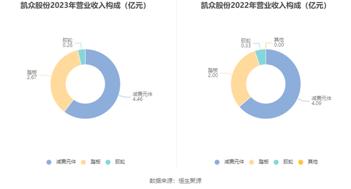 分产品看,减震元件、踏板、胶轮2023年毛利率分别为38.56%、29.71%、27.88%。
