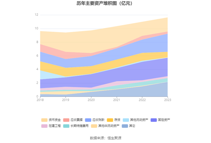 资产重大变化方面,截至2023年年末,公司应收账款较上年末增加35.58%,占公司总资产比重上升5.05个百分点;其他应收款(含利息和股利)较上年末增加560.03%,占公司总资产比重上升3.88个百分点;存货较上年末减少28.18%,占公司总资产比重下降3.35个百分点;应收票据较上年末减少40.18%,占公司总资产比重下降2.13个百分点。