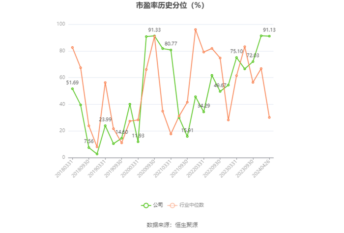 市盈率为负时,不显示当期分位数,会导致折线图中断。