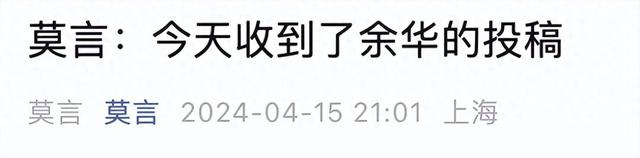 4月15日晚,微信公众号“莫言”刊发了一篇余华给莫言的投稿。