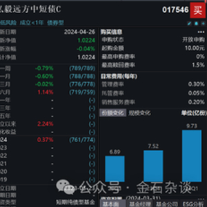 值得注意的是,弘毅远方基金公司是联想控股旗下弘毅投资全资子公司,管理规模只有14.24亿,仅弘毅远方中短债规模就高达10亿,这样的小微型基金公司投资还是要慎重。