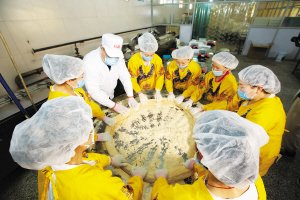 展馆里一口坑洼不平的老铜锅,引起了记者的注意。“这是我们的‘镇厂’之宝。”哈尔滨超越食品有限公司总经理贾晓芳说,用这款老铜锅熬制的老式水果糖,从公司起家直至今日,始终是“镇厂”的经典产品。