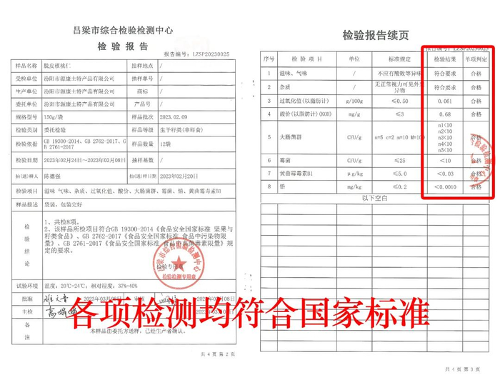 第三方检测机构出具的质检报告,各项检测均符合国家食品安全标准,可以放心购买和食用!
