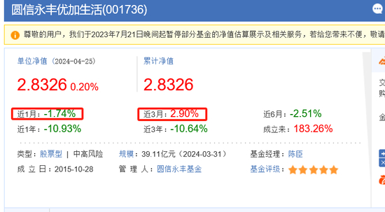 4月26日,圆信永丰优加生活(001736),单位净值2.8326元,近1月收益-1.74%,同类排名620名。近2年收益7.7%,业绩表现优秀。