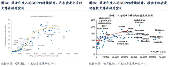 (3)人口红利&消费升级—>内需韧性。随着印度人均GDP的持续提升,汽车/电子产品密度仍有较大潜在提升空间。伴随着印度城镇化进程的持续推近+印度制造业逐步崛起+人口红利释放,印度人均收入水平有持续抬升的驱动力,收入增长将带动消费升级,印度汽车/电子产品密度仍有较大潜在提升空间,支撑内需韧性。
