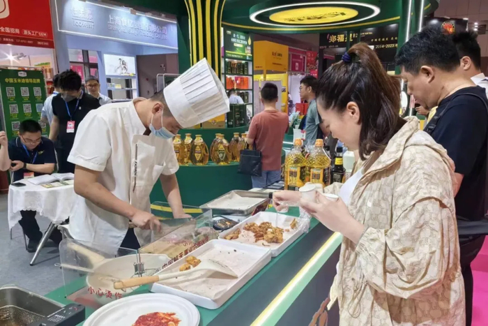 健康好油,欢乐试吃。美食大厨用长寿花粮油产品现场制作的炸酥肉、炸鸡、炸豆腐丸子等特色小吃吸引了众多观展人员前来品尝,得到了大家的一致好评。